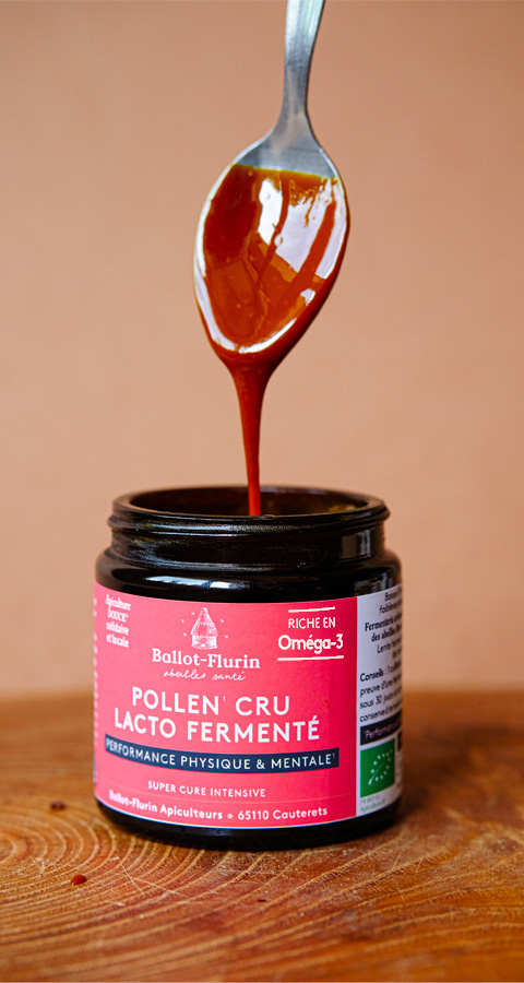 El Polen1 Crudo Lacto Fermentado es un preparado inédito, fruto de un saber hacer artesanal único, que recrea fielmente la fermentación natural del polen en la colmena.
